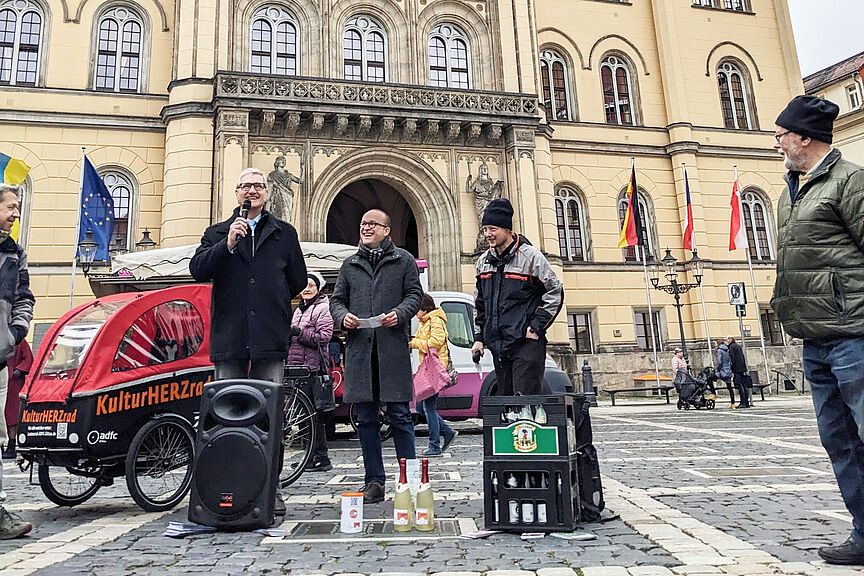 Am heutigen Mittwoch um 11 Uhr weihte der ADFC gemeinsam mit Andreas Mantschott, stellvertretend für den Oberbürgermeister Zenker, auf dem Zittauer Marktplatz das erste freie Lastenrad der Stadt ein.