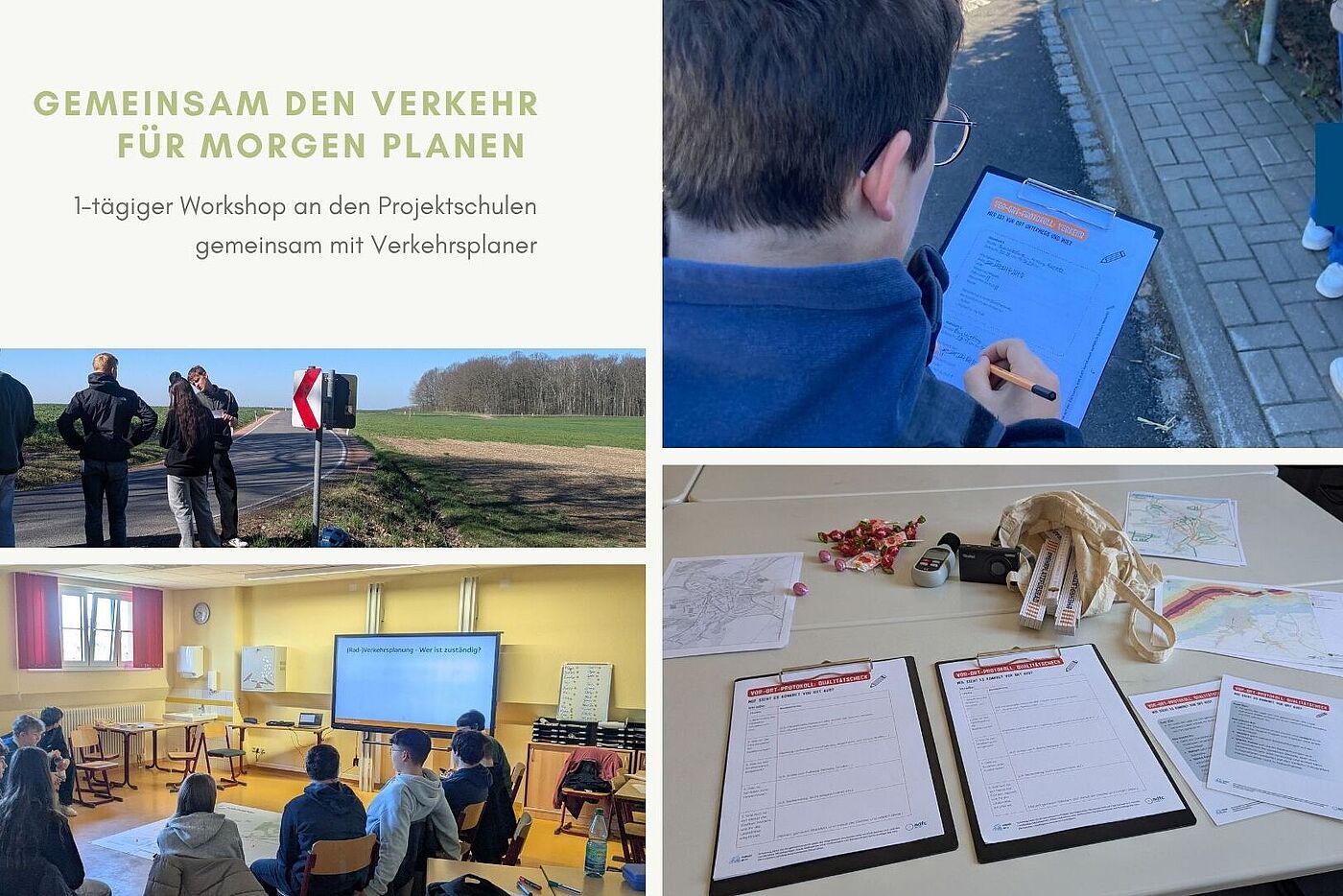 Im Frühjahr 2025 fanden an der Oberschulen Lichtenau, der Oberschule Hainichen und der Erich-Viehweg-Oberschule in Frankenberg/Sachsen eintägige Projekttage statt. Die Schülerinnen und Schüler setzten sich detailliert mit der Verkehrssicherheit für Rad- und Fußverkehr im Umfeld ihrer Schule auseinander. Gemeinsam mit professioneller Unterstützung durch Verkehrs- und Stadtplaner:innen entwickelten sie kreative Lösungen für Gefahrenstellen.
