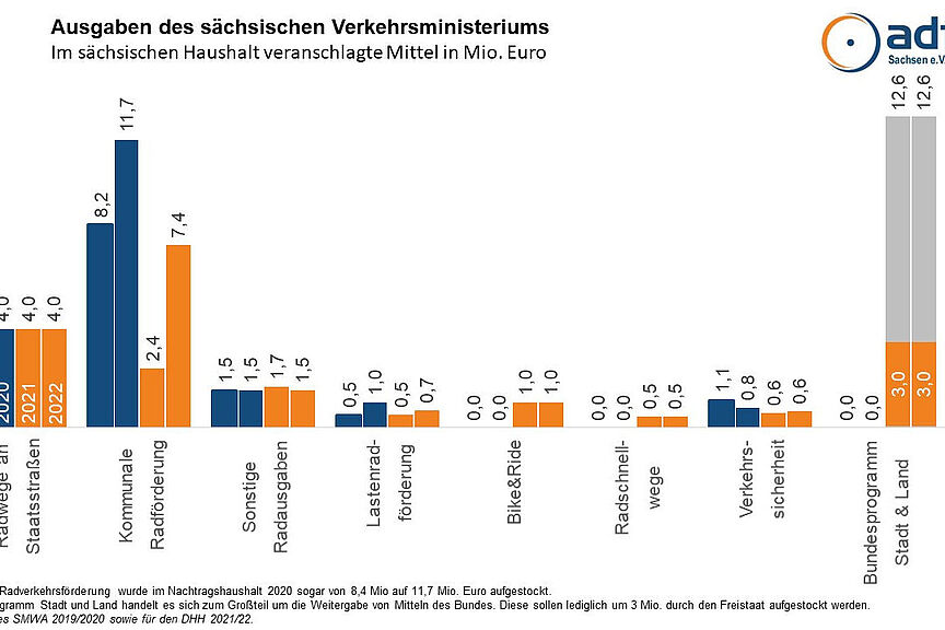 Den ambitionierten Zielstellungen für die Verkehrswende und die Förderung des Radverkehrs nach zu urteilen, bestand zwischen den Koalitionspartnern offenbar wenig Dissens: Die Verdoppelung des Radverkehrsanteils in Sachsen in den nächsten fünf Jahren setzten sich CDU, Grüne und SPD zum Ziel, nicht mehr und nicht weniger. Mit großen Erwartungen war daher auch die Veröffentlichung des Haushaltsentwurfs für 2021/2022 durch die Sächsische Staatsregierung verknüpft, dem ersten gemeinsamen Haushalt von CDU, Grünen und SPD in Sachsen.